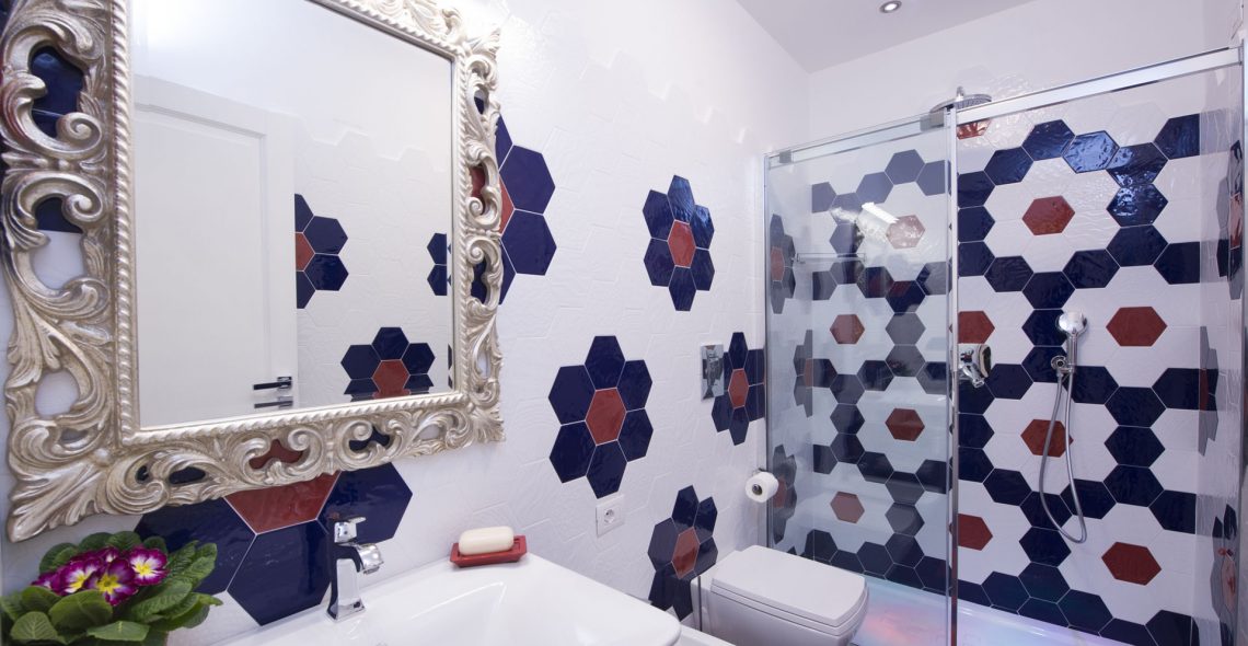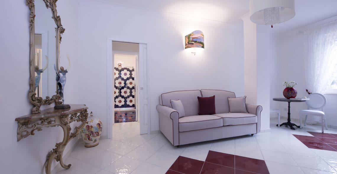 Un ampio bagno con doccia e decorato con maioliche di Vietri sul Mare. La camera vi offre inoltre un cabina armadio capiente.