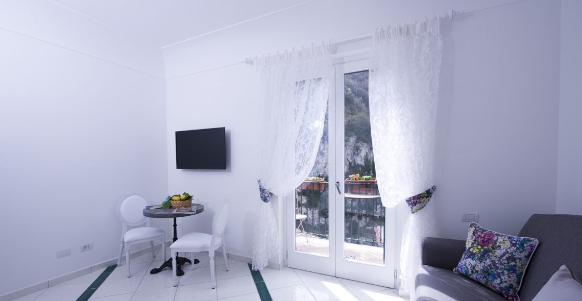Ogni camera dispone di bagno privato con doccia decorato con preziose maioliche in ceramiche di Vietri sul Mare. Le camere dispongono di un terrazzino da dove si può ammirare il panorama della Valle e di Amalfi.